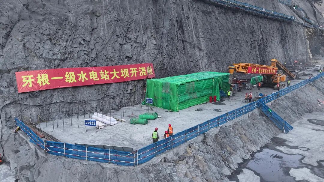 牙根一级水电站大坝首仓混凝土浇筑启动,超宽单体闸坝攻克世界级防裂难题